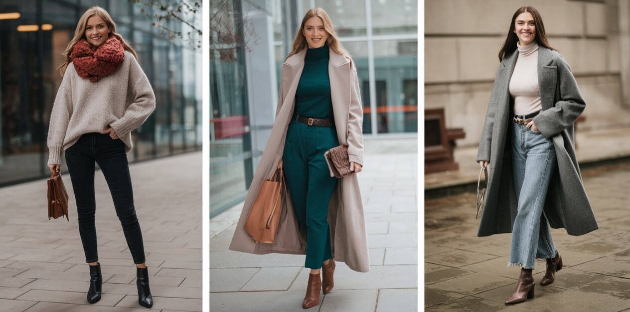 Taki zestaw zapewni Ci profesjonalny wygląd, a jednocześnie będzie wystarczająco ciepły na 15-stopniową temperaturę. Pamiętaj o dodaniu szala lub apaszki, które nie tylko ocieplą szyję, ale też dodadzą stylowego akcentu.