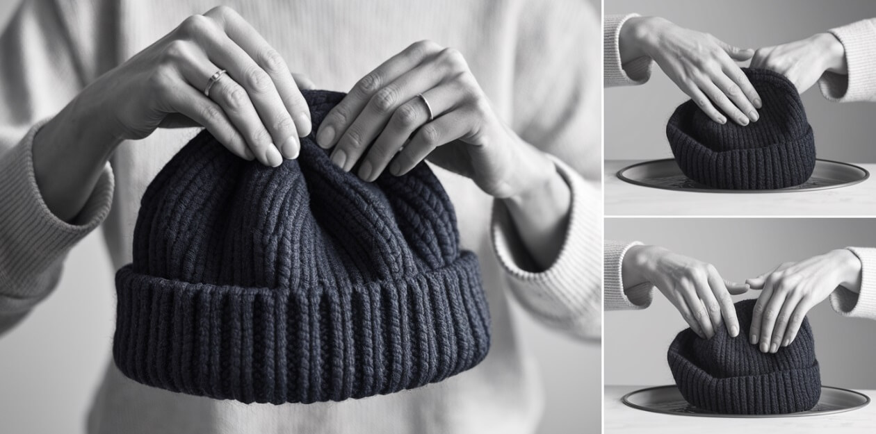 Ta technika sprawdza się świetnie w przypadku czapek z wełny lub mieszanek zawierających wełnę. Ciepło i wilgoć pomagają włóknom się skurczyć, zmniejszając tym samym rozmiar czapki.