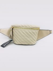 Model NER-V-3 haber z Versoli – bo o nim będzie teraz mowa – na pierwszy rzut oka jest nie do odróżniania od zwykłej damskiej torebki. Nic w tym dziwnego, ma bowiem jak na nerkę dość nietypowy kształt kwadratowego kuferka z materiału pikowanego w skośne pasy. Górna klapkę otwiera duży, złoty zamek błyskawiczny z dwiema zawieszkami. Nerka (bo to jednak naprawdę nerka!) występuje w aż ośmiu wersjach kolorystycznych: beżowej, białej, czerwonej, czarnej, żółtej, różowej, srebrnej i niebieskiej. Regulowany pasek jest również „torebkowy”, tworzący z nerką jednolitą całość. Jego części wszyte bezpośrednio z obu stron nerki mają kształt większych profilowanych skrzydełek, dzięki czemu stabilniej utrzymują ją przy pasie.