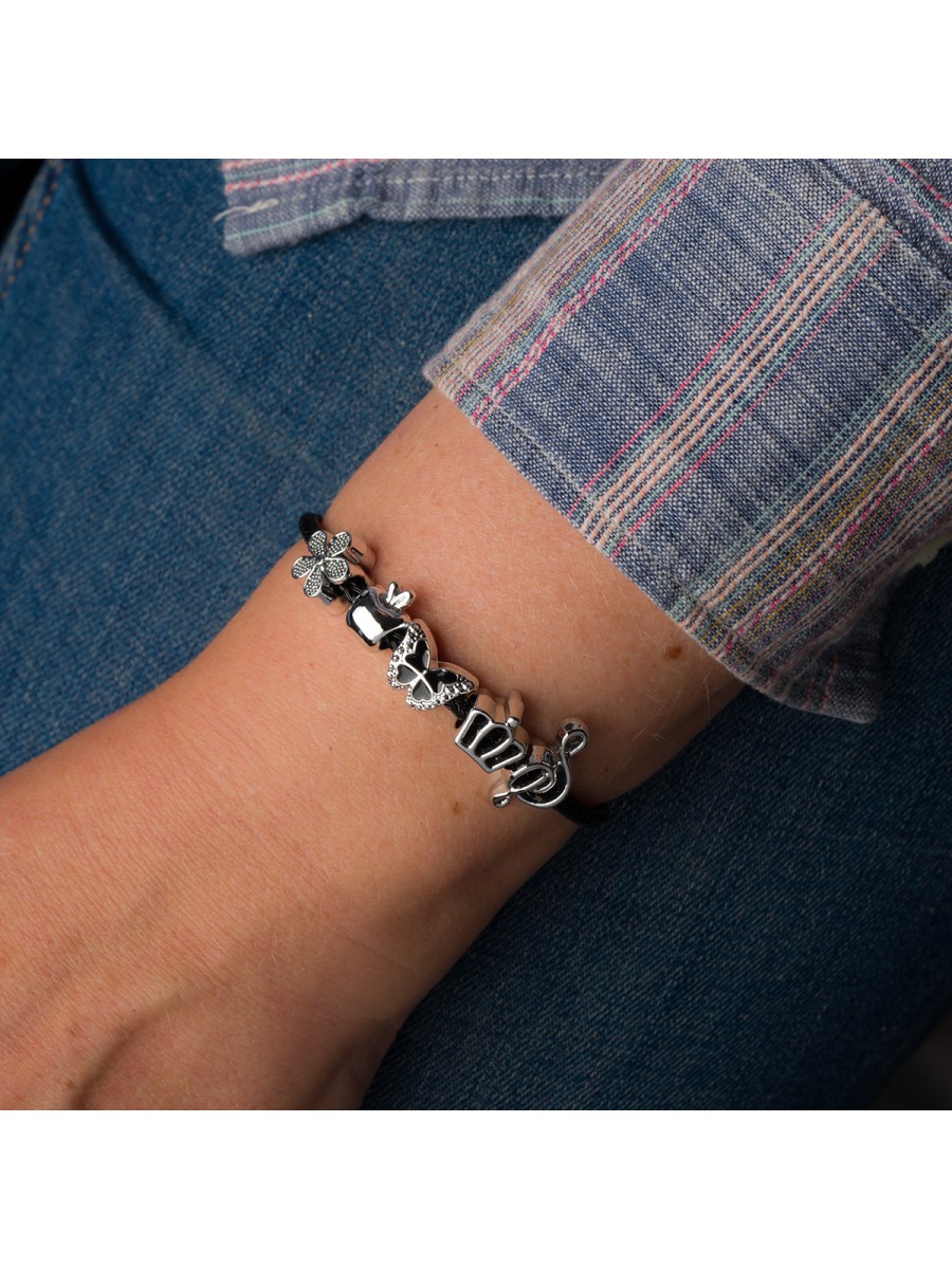 Ta czarno-srebrna bransoletka z zawieszkami to Twój osobisty sposób na wyrażenie siebie. Każdy symboliczny charms, ozdobiony lśniącymi cyrkoniami, opowiada fragment Twojej historii. Noś ją jako swoją bransoletkę mocy, która doda charakteru codziennym stylizacjom.