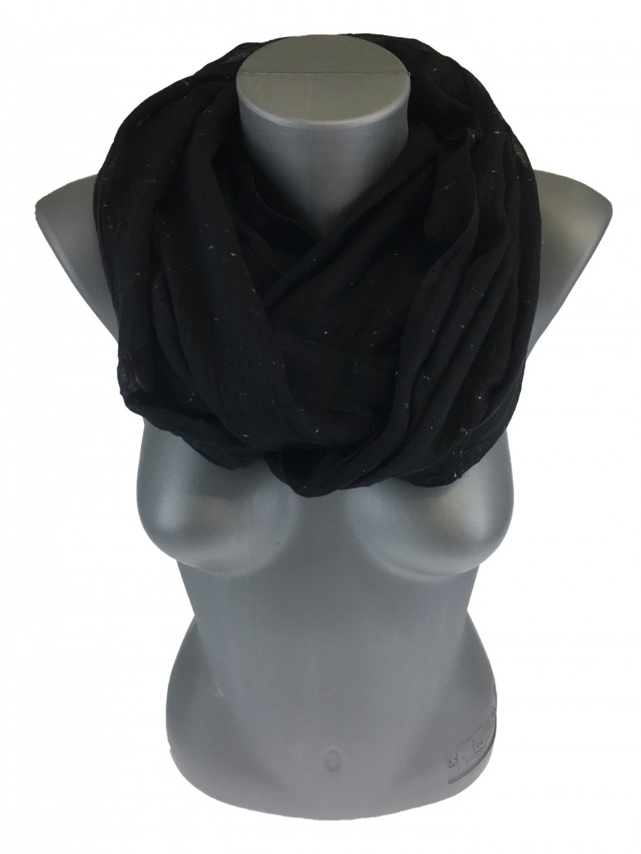 Odkryj ten damski komin, który doda lekkości każdej stylizacji. Czarny szal z subtelnymi, kolorowymi drobinkami to idealny dodatek, który ożywi Twój codzienny strój.