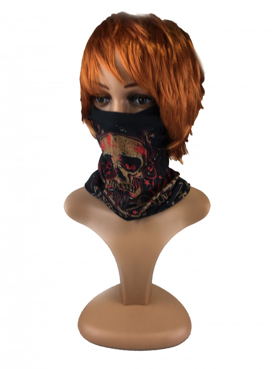 Pokaż swój styl z tą czarną chustą wielofunkcyjną! Idealna bandana dla fanów motocyklowych klimatów, z wyrazistym nadrukiem czaszki. Sprawdzi się zarówno na co dzień, jak i podczas aktywności.
