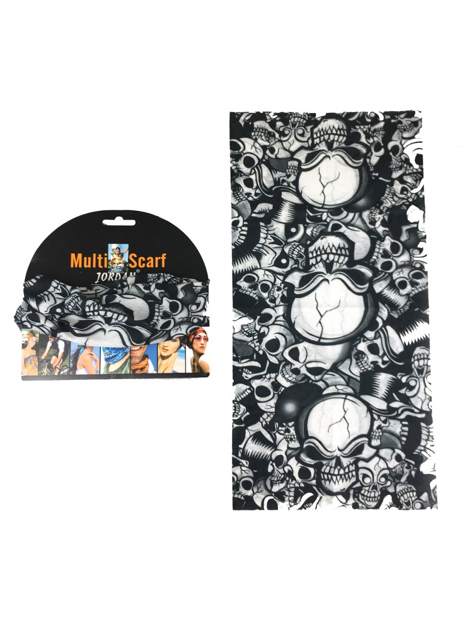 Odkryj wszechstronność tej czarnej chusty/komina z wyrazistym wzorem w czaszki! Idealna na rower, narty czy motocykl, ochroni Cię przed wiatrem i słońcem, dodając charakteru każdej stylizacji.