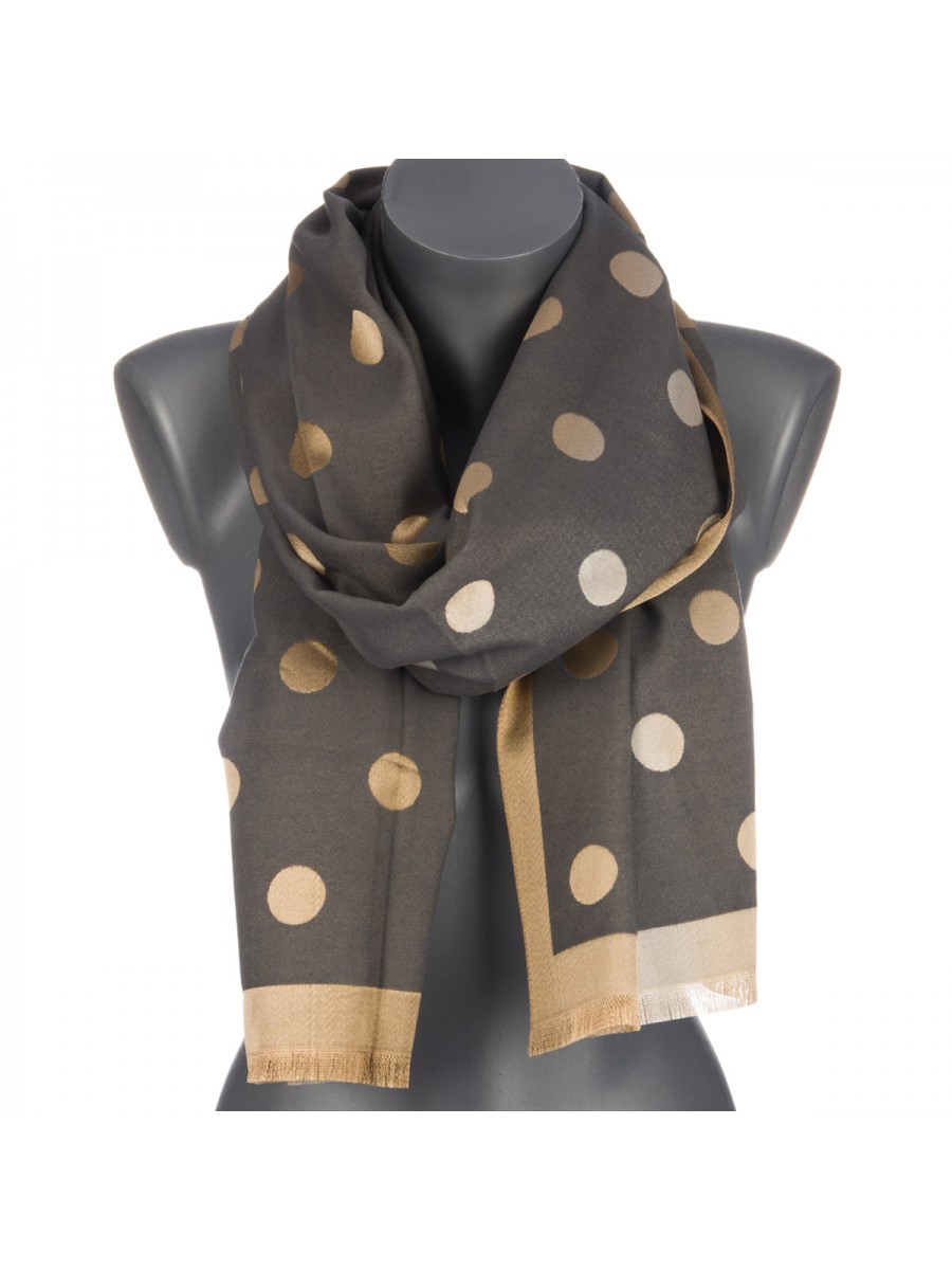 Odkryj modny szal damski ST-28, który doda szyku każdej stylizacji. Ten beżowy szal z delikatnymi kropkami i frędzlami to idealny dodatek na co dzień.