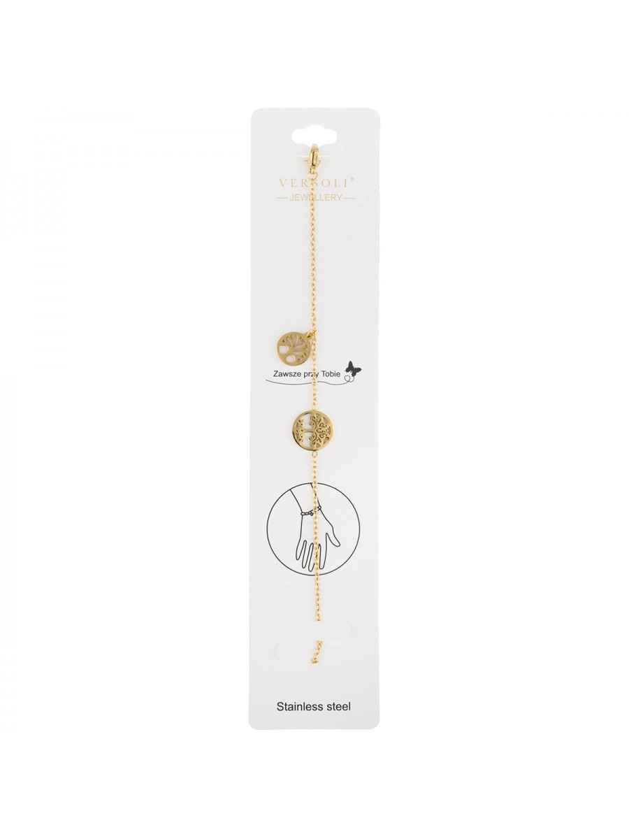 Элегантный браслет из стали золотистого оттенка, украшенный изящными подвесками и сверкающими фианитами. Лёгкий и изящный, он идеально подходит как для повседневной носки, так и для особых случаев.